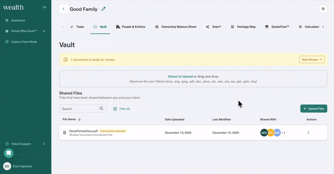 After you’ve reviewed your documents, you can select Save & Split, and each of those documents will be individually saved in your Vault for instant organization. Watch our video in Wealth Academy to start testing this out yourself!