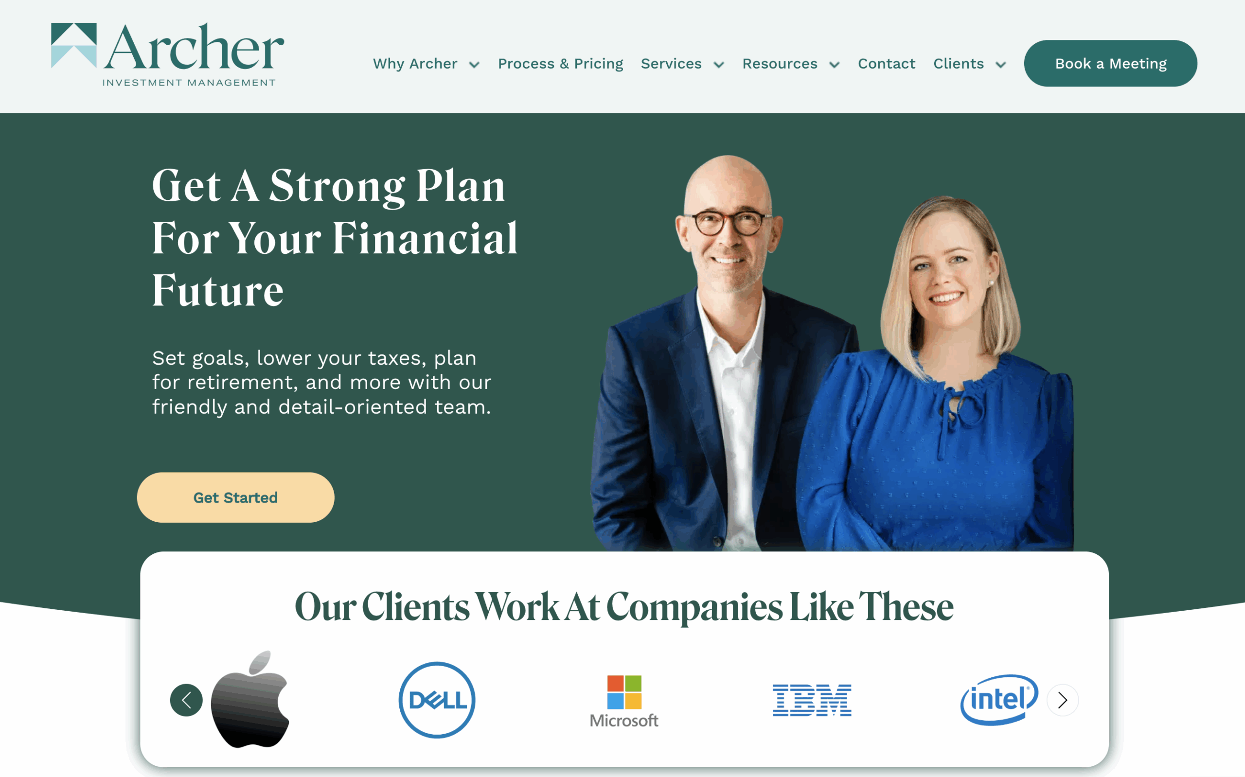 Why it works: As a fully digital, tech-forward firm, Archer’s website mirrors the efficiency of their service model. The design is sleek and modern, signaling to busy professionals that this is a firm equipped to handle their wealth with modern tools and remote capabilities.