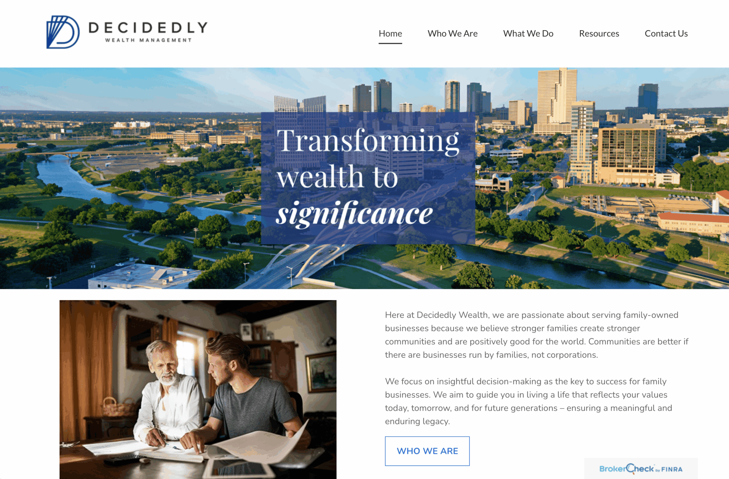 Why it works: This site is a masterclass in niche marketing, explicitly targeting family business owners with the tagline “Transforming Wealth To Significance.” The copy speaks directly to the unique emotional and financial challenges of family enterprises, creating an immediate connection.