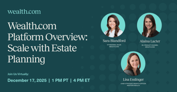 Join us for an exclusive online event as we unveil our new strategic relationship with LPL, offering LPL W2 advisors direct access to Wealth.com’s industry-leading estate planning platform.