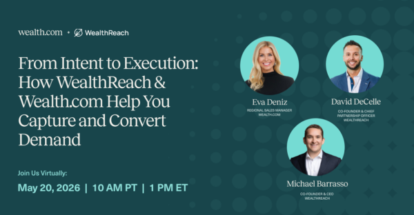 Join David DeCelle, Co-Founder and Chief Partnership Officer at WealthReach, Michael Barrasso, Co-Founder & CEO of WealthReach, and Eva Deniz, Regional Manager at Wealth.com for a walkthrough of how advisors are turning digital engagement into real client opportunities, and closing the loop with seamless estate planning.