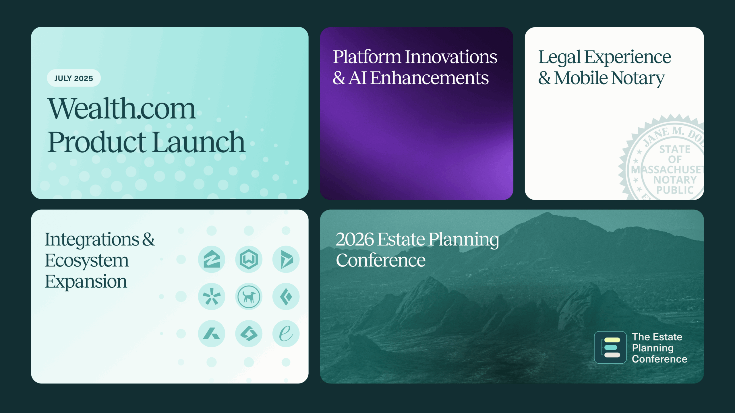 - June: WealthManagement.com names Wealth.com a finalist in six categories, including Estate Planning Tech, AI Innovation, and CEO of the Year.